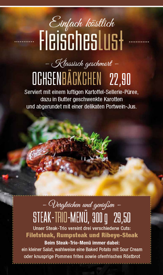 Beim Steak-Trio-Menü vergleichen und genießen Sie drei verschiedene Cuts (Filet, Rump und Ribeye).